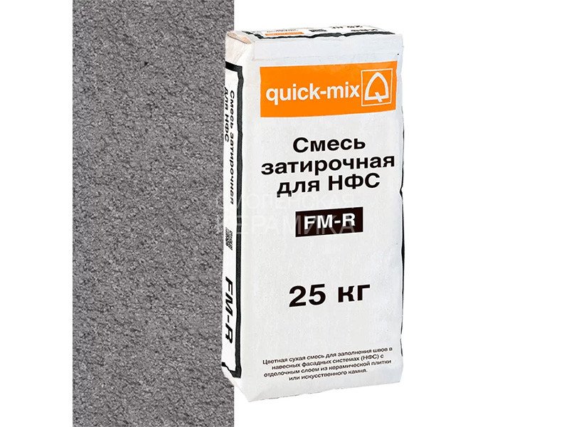 Цветная затирочная смесь quick-mix FM-R D графитово-серая (шовный раствор FM-R) применяется для заполнения швов штучных элементов декоративно-защитного финишного слоя в НФС.