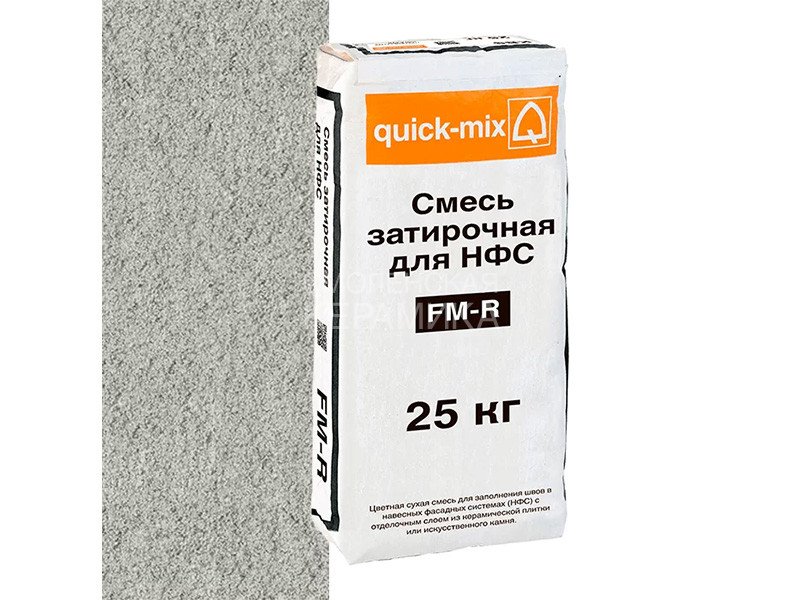 Цветная затирочная смесь quick-mix FM-R T C светло-серая (шовный раствор FM-R) применяется для заполнения швов штучных элементов декоративно-защитного финишного слоя в НФС.