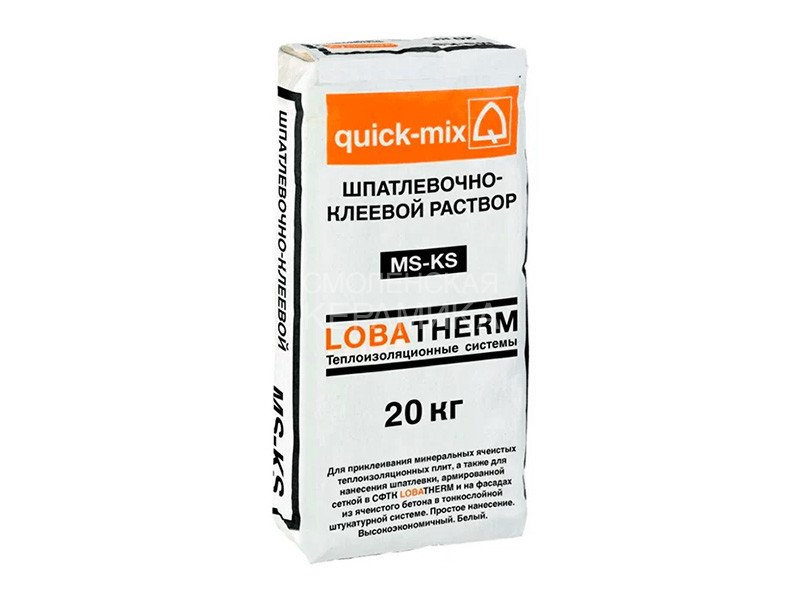Легкий клеевой и базовый штукатурный состав quick-mix MS-KS применяется для приклеивания и фиксации теплоизоляционных плит и устройства армирующего базового слоя. Состав MS-KS также применяется как тонкослойная штукатурка для ячеистого бетона с последующим нанесением декоративной штукатурки.